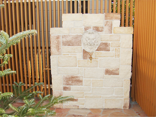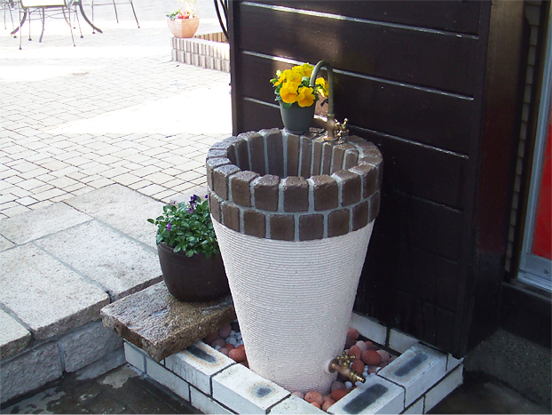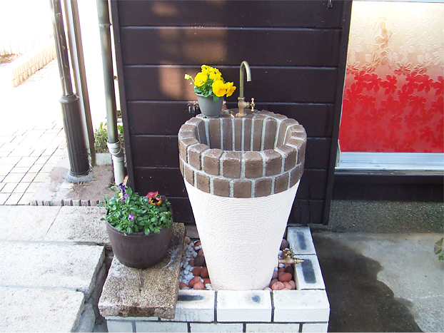 立ったまま作業が出来る使い勝手の良いコーンタイプの立水栓。埋め込みの深さを調整することで、身長に合わせた高さに出来ます。